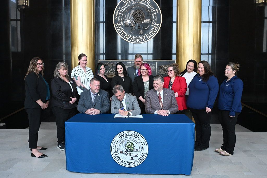 April 17th, 2025 – In a ceremonial signing attended by Public Safety Telecommunicators and Public Safety Answering Point leaders from across the state, North Dakota Governor Kelly Armstrong—joined by Representative Todd Porter and Senators Chuck Walen and Ryan Braunberger—signed House Bill 1419 and Senate Bill 2296 into law.